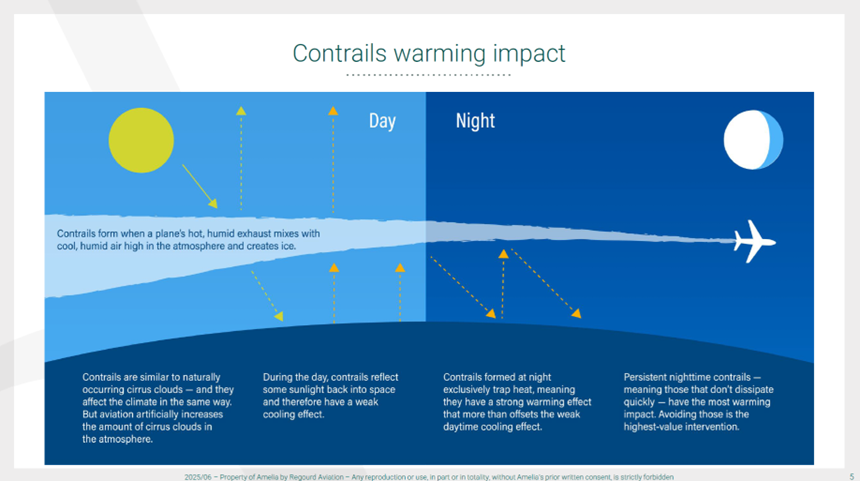 When we talk about aviation and sustainability, most people think about CO₂ emissions. But another, less visible factor has a big impact on the climate: contrails. At Amelia, we decided to take this issue seriously. What started as a simple question – can we reduce contrails in real operations? – has become a major part of our sustainability program. Today, Amelia is one of the first airlines to use daily contrail avoidance planning across its operations. Before explaining how we do it, here’s a bit of context.