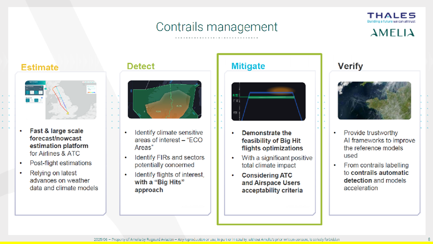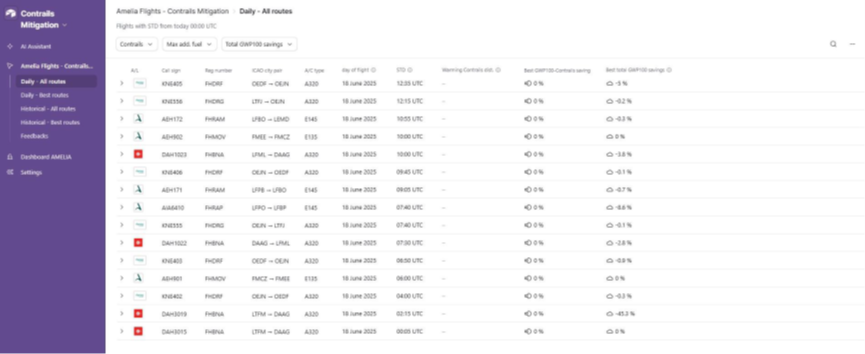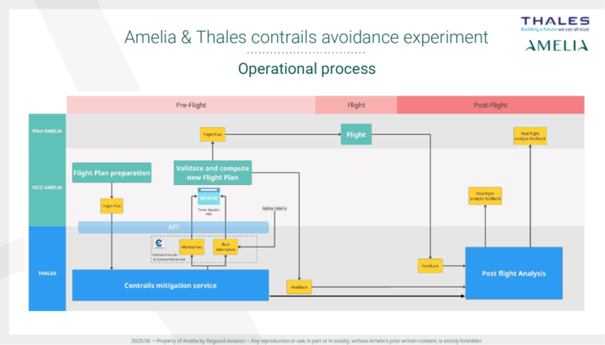 Analysis of our 15,000 flights last year revealed a striking pattern: 80 percent of the contrail impact came from just 5 percent of flights. While this trend is visible across the fleet, certain individual flights can have an even higher climate effect. In other words, some routes contribute disproportionately to contrail-related warming. To tackle this, Amelia partnered with Thales AVS, a company with deep expertise in aerospace and aviation systems. Thales develops tools for flight operations, navigation, and air traffic management, making them well suited to help us predict and avoid contrails.
