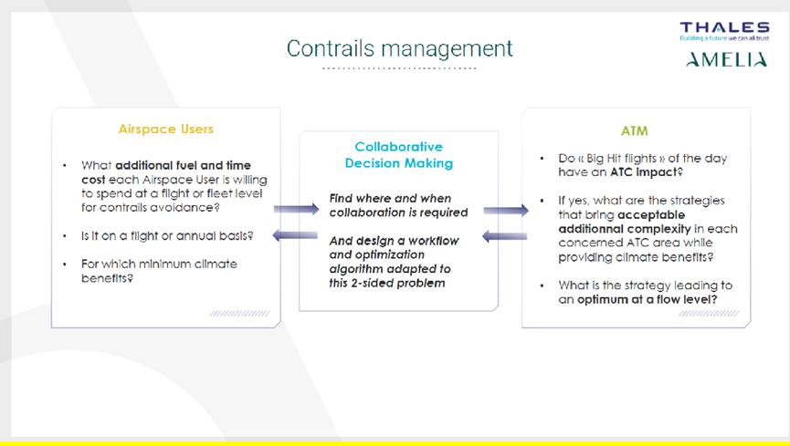Not all flights produce contrails — only a small percentage do. Adjusting a flight path to avoid contrails may increase fuel burn, since flight plans are usually optimized for minimum fuel consumption. This means we must balance scientific accuracy with operational efficiency. There is also inherent uncertainty: contrails contribute to warming, but the exact effect is difficult to quantify. This uncertainty can affect operational procedures, particularly in-flight management by Air Traffic Control (ATC). For Amelia, which adjusts a few dozen to a few hundred flights, the impact is limited, but larger airlines would face greater challenges.