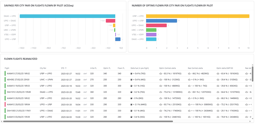 We analyzed around 50 flights, including five dedicated test flights aimed at avoiding contrail formation. The results were encouraging: we saved about 15 tons of CO₂ equivalent from contrail avoidance for only around 100 kg of extra fuel burned. From a climate perspective, the results were clearly positive. This experimental phase allowed us to refine our methodology, develop the dedicated tool, and understand how the OCC and flight crews can collaborate effectively. These insights form the foundation for a systematic, long-term approach.