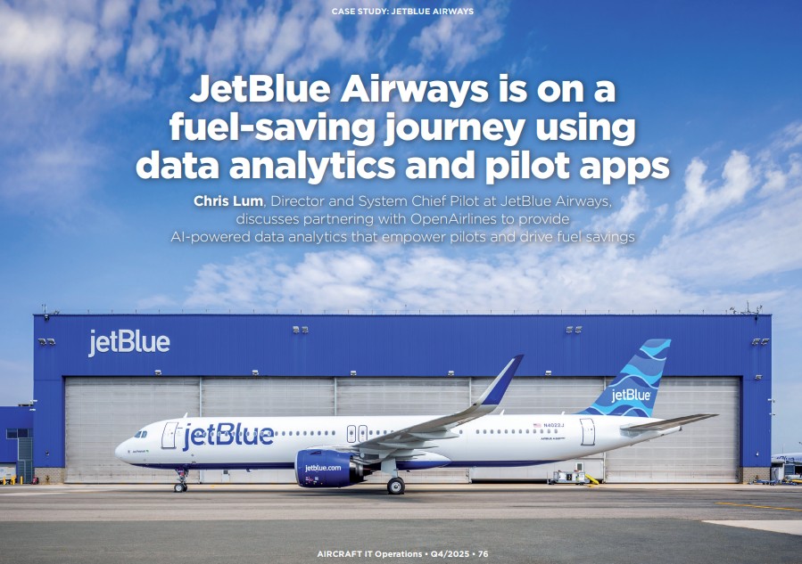| CASE STUDY: JetBlue Airways is on a fuel-saving journey using data analytics and pilot apps | Chris Lum, Director and System Chief Pilot, JetBlue Airways | View article |