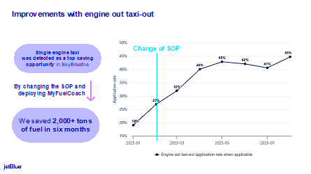 You can see in figure six that we began in January 2025 at roughly 19 percent engine out, taxi out performance. However, bear in mind we use JFK and Boston airports and are flying in and out of the Caribbean with short taxis, which makes it a challenging environment to be able to do engine out, taxi out.