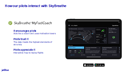 The goal of SkyBreathe® MyFuelCoach isn’t to have the pilot interacting with it while they’re operating the aircraft, but to learn from it. I believe pilots are ‘Type A’ people, and the reason that I love this app is that pilots don’t want to be bad pilots. They don’t want to waste fuel for no reason, at least not JetBlue pilots. They want to fly the aircraft optimally. And as Type A personalities, they want to pit themselves against each other.