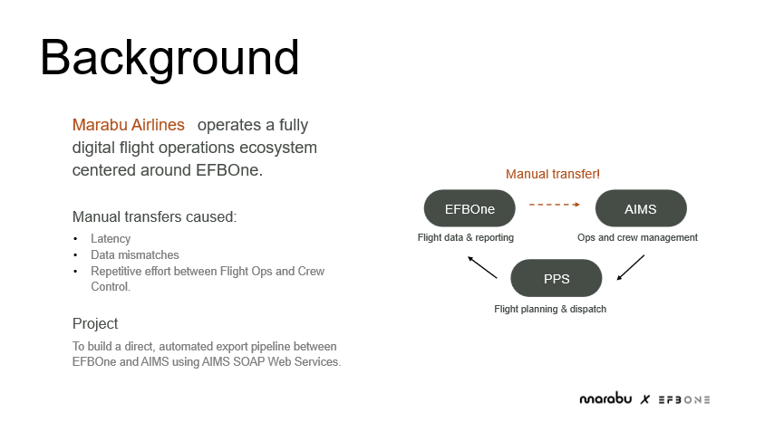 How Marabu Airlines replaced manual post-flight data handling with a fully automated EFB-to-operations integration, without vendor dependency or implementation delays. Maxim Dubovik, EFB Manager, shares the project.