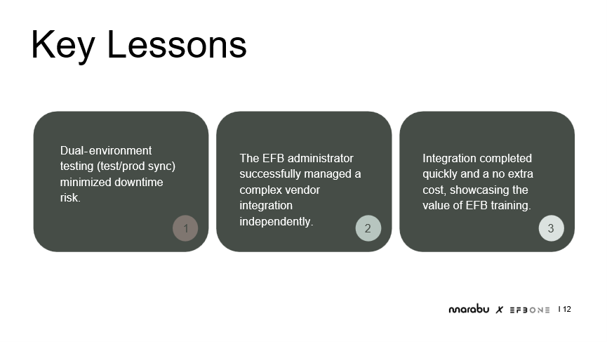 Finally, the project reinforced that minor coding skills, combined with the right tools and training, can enable teams to manage integrations efficiently. This approach not only accelerates implementation but also builds operational expertise in-house.