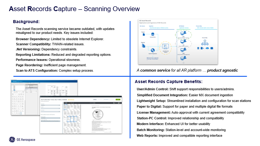 While it’s not the most glamorous or eye-catching step in the complex processes of aircraft Maintenance, Repair and Overhaul (MRO) scanning is a critical component in any process that uses records and requires that they are kept and accessible. This case study looks at how a busy airline maintenance division worked with its technology collaborator to not only improve the scanning process itself but also to improve efficiency. First, Travis Kissane, Senior Product Director at GE Aerospace, Software as a Service.