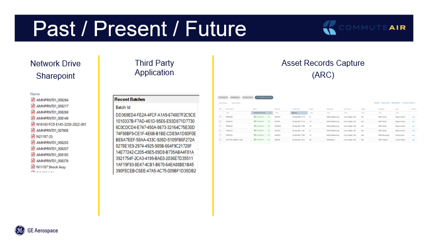 CommuteAir has been in operation for 35 years and I joined eight years ago. As I moved through CommuteAir, I took on maintenance programming, then, in 2023, aircraft records. Our collaboration with GE Aerospace started in 2020 but I don’t think we implemented well as a customer. Figure 2 shows the past present and future of this case.