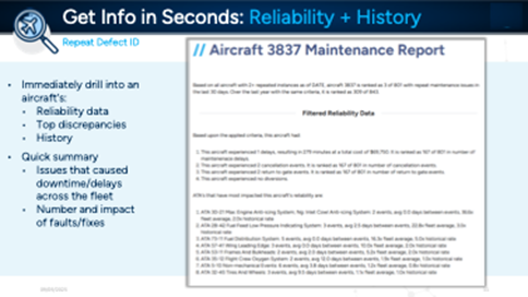 AIXI’s ATA AutoCoder and the tools built on top of robust, clean maintenance data remove the need for technicians and reliability teams to rely on ‘gut feelings.’ They can use real data that is immediately accessible to fix planes and reduce AOGs. AIXI’s platform of tools, grounded by the ATA AutoCoder, empower a small reliability team or technician to do the work of multiple people by instantly extracting information they need.