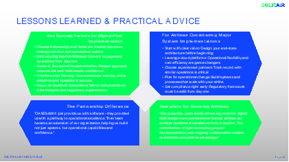 With such an agile operational foundation in place, SolitAir is now ready for rapid fleet scaling and growth, based on our digital-first culture and confidence in the paperless process. We believe that our M&E capabilities deliver a competitive operational advantage and are a template for the industry. Indeed, our proactive, partnership-driven approach to digital M&E design demonstrates that start-up airlines can achieve operational excellence from inception.