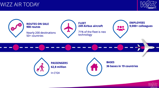 The airline operates mainly in Europe, with focus on Central and Eastern Europe. We make approximately 1,000 flights per day with a fleet of more than 250 aircraft (figure 1). Our fleet consists of more than 72% Airbus 321neos and we aim to carry more than 68 million customers in 2026.